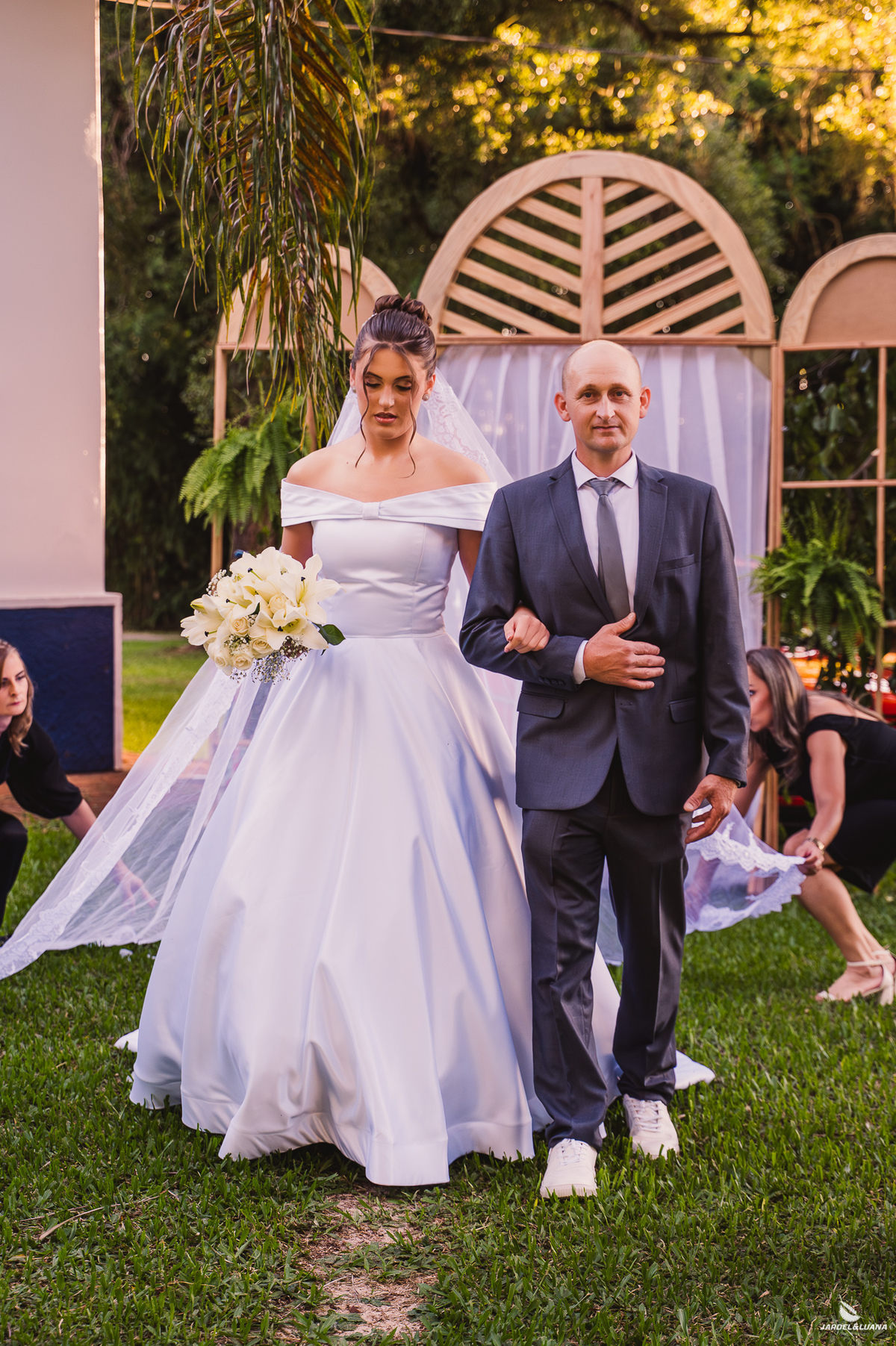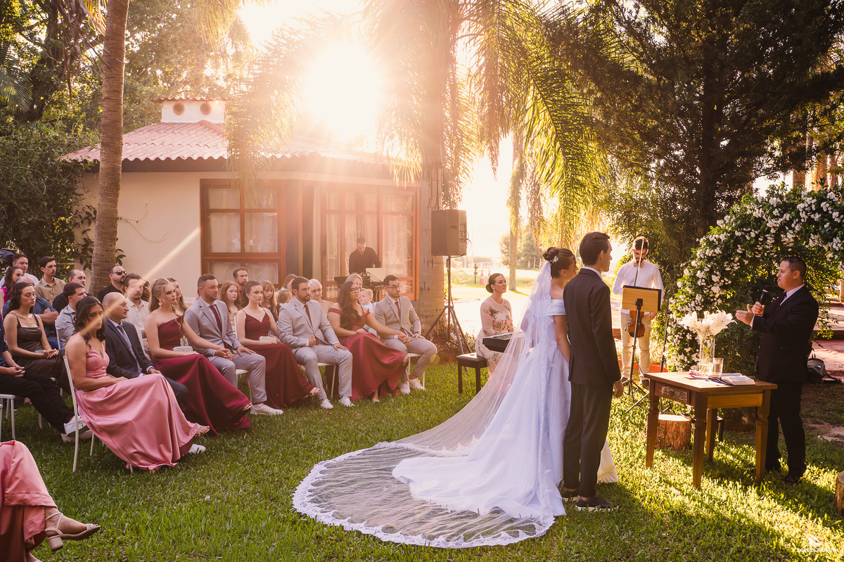 A luz do dia trouxe uma atmosfera leve e encantadora para a cerimônia, revelando cenas cheias de vida e emoção. Conforme a noite chegou, o ambiente se transformou, criando um cenário ainda mais íntimo e especial, onde cada instante parecia carregar um significado ainda maior.