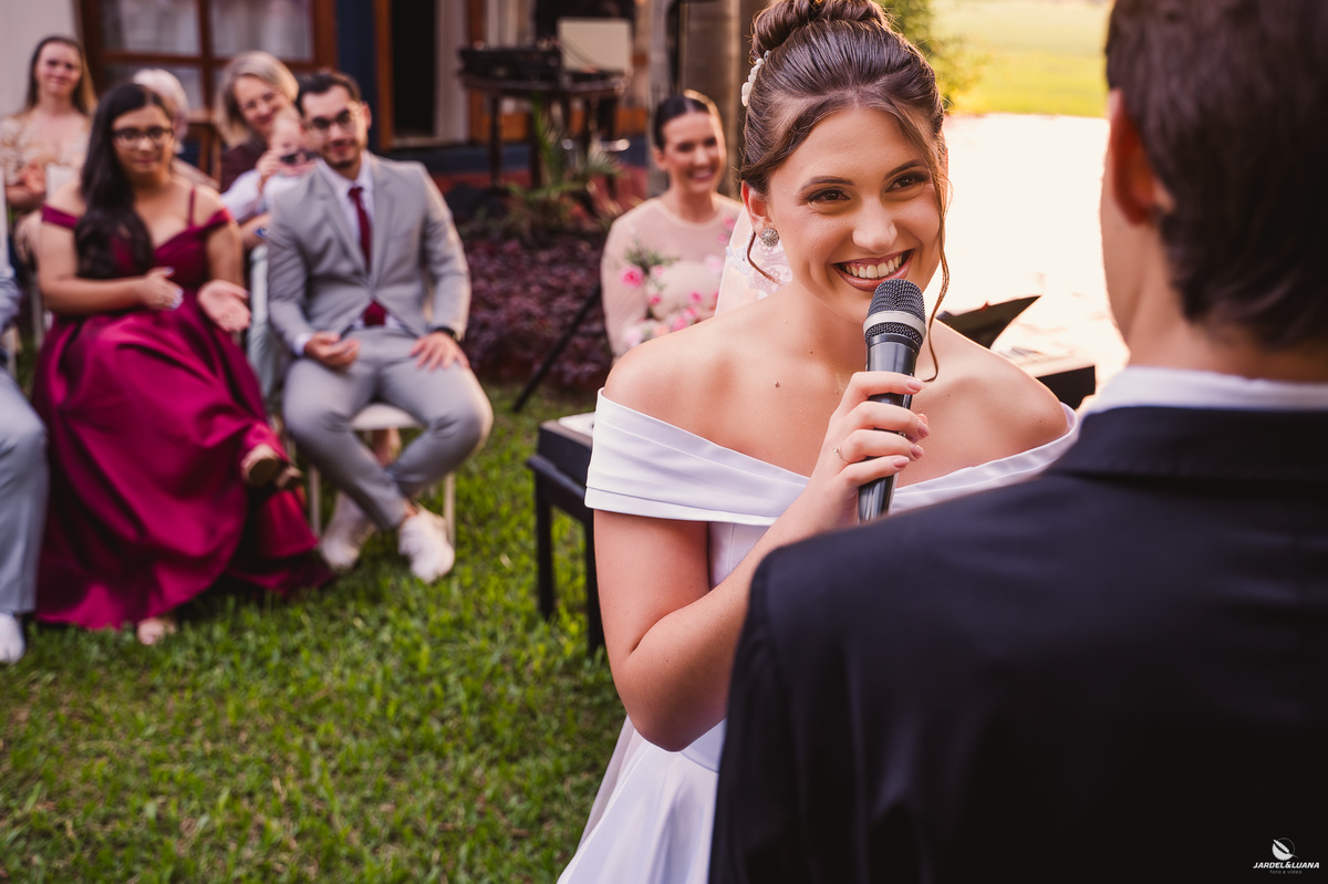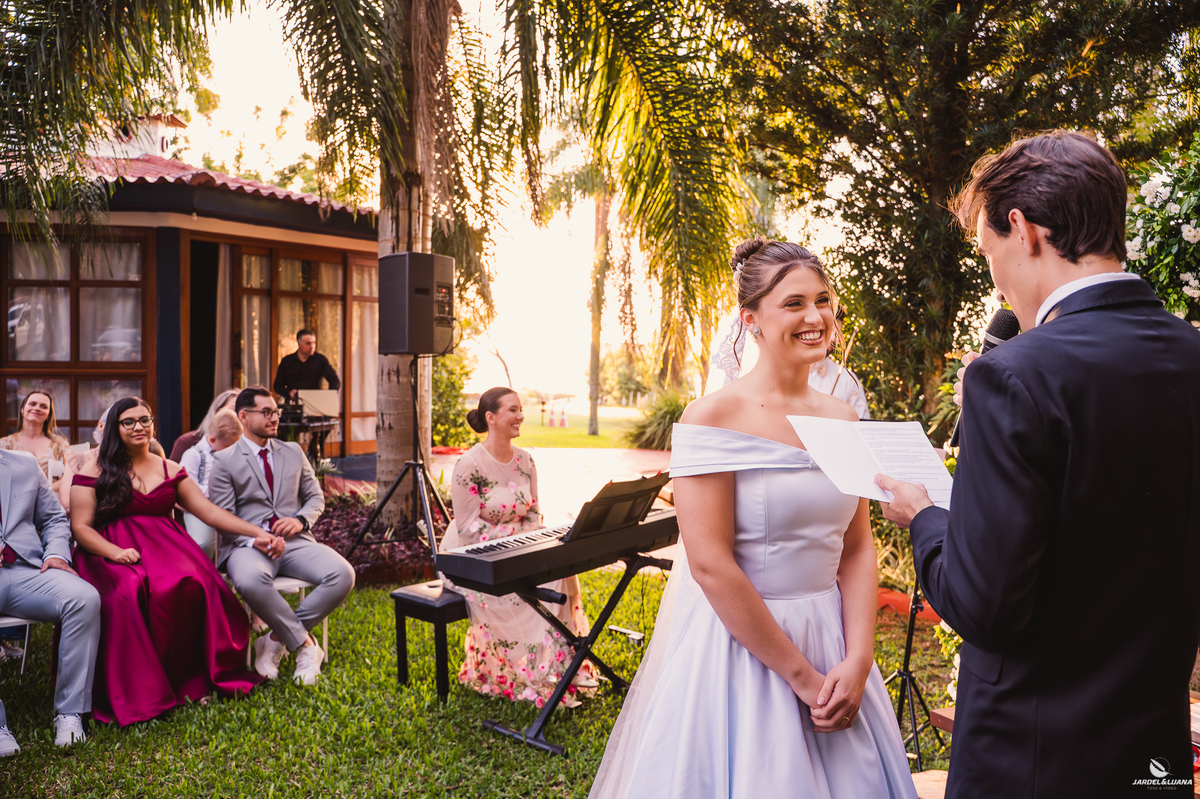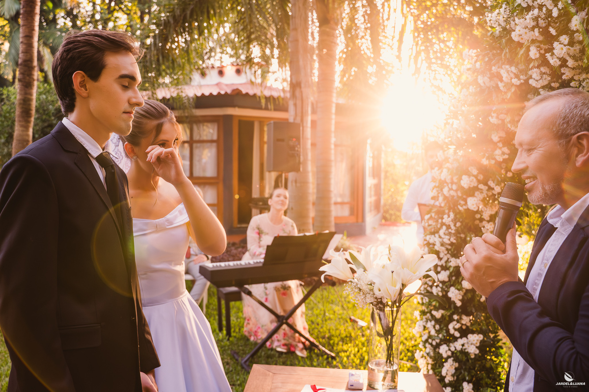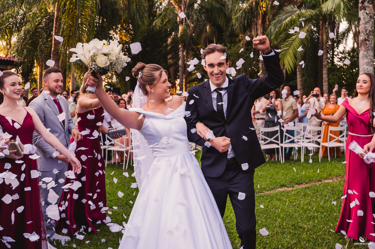Na Casa Leopoldo, em Quinze de Novembro, amigos e familiares se reuniram ao ar livre para testemunhar um dos momentos mais importantes da história dos dois. Entre olhares cheios de emoção, abraços apertados e sorrisos verdadeiros, o amor deles ganhou ainda mais força diante de todos que fazem parte de sua caminhada.